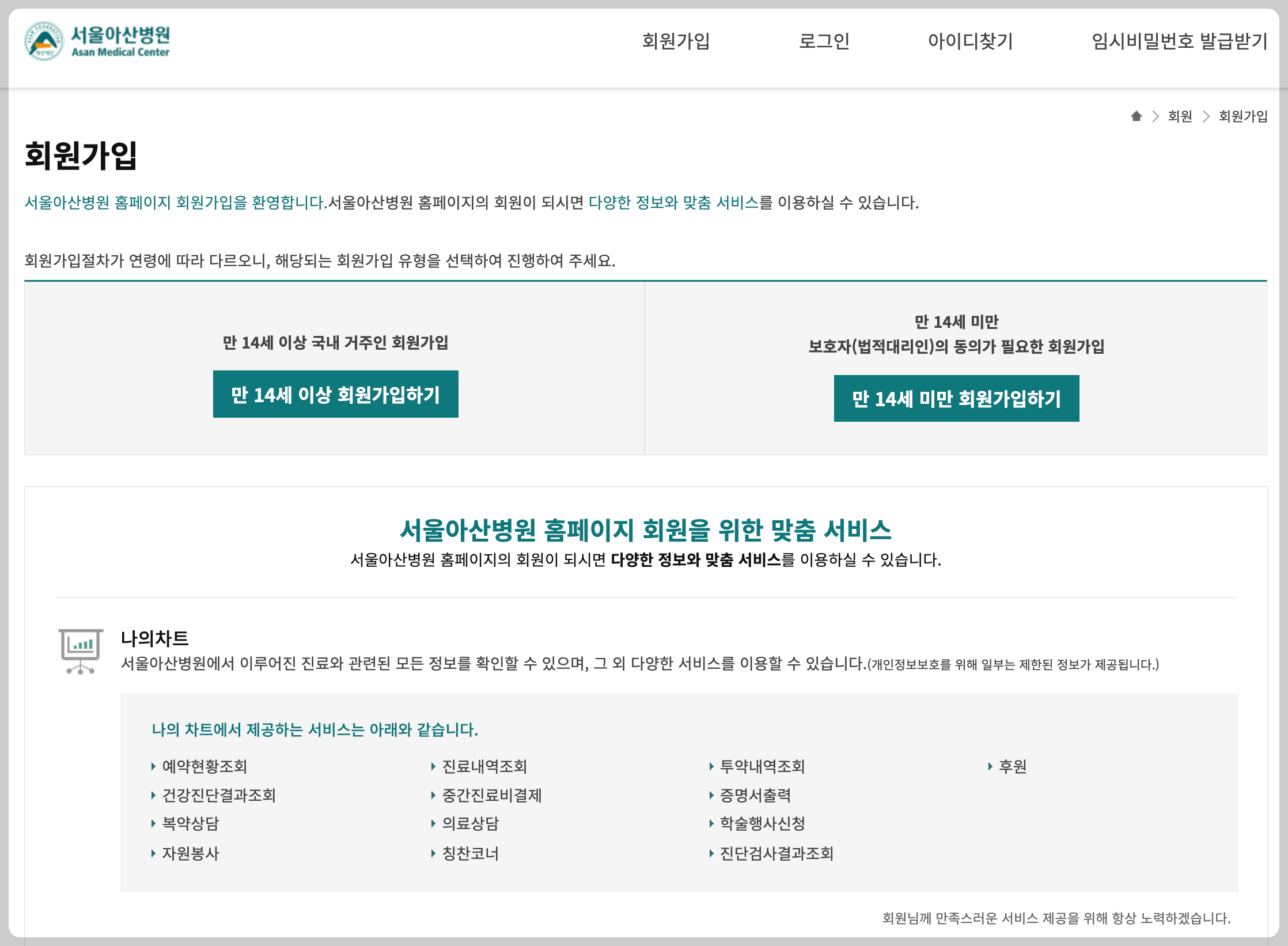 회원가입을 하면 서울아산병원에서 이루어진 진료와 관련된 모든 정보를 확인할 수 있습니다.